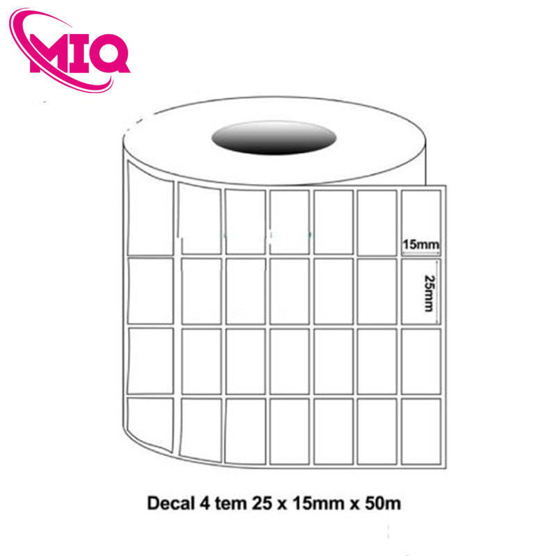 Giấy in mã vạch 4 tem 25x15mm cuộn 50m – tem y tế (decal thường)