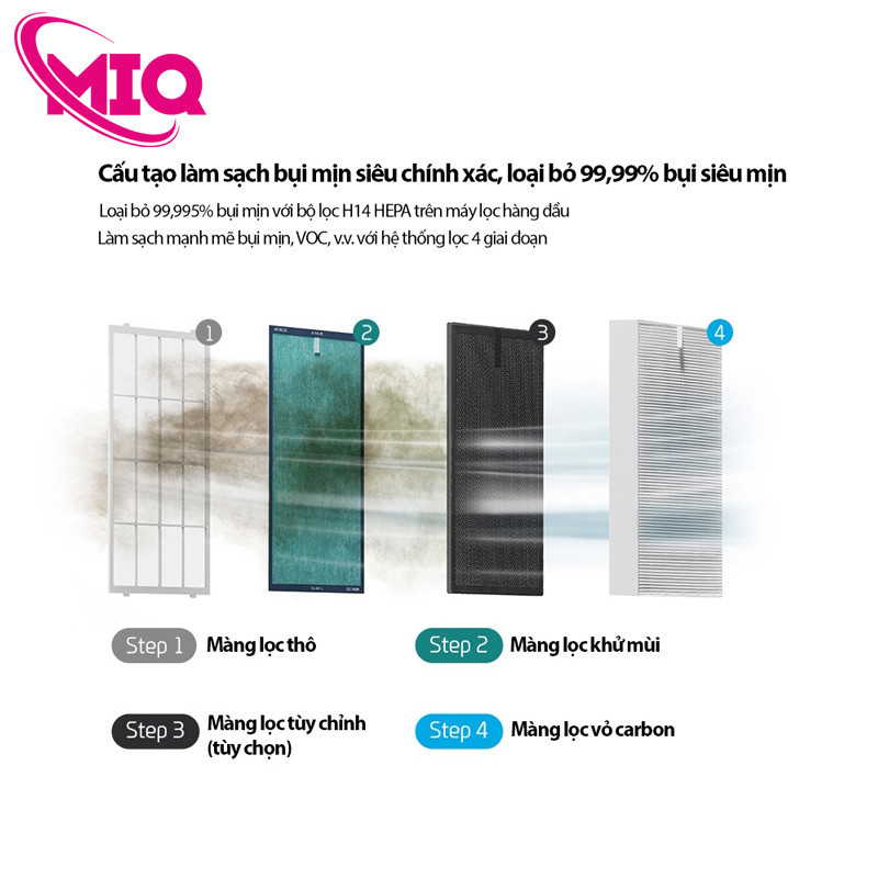 Lớp lọc này có thể loại bỏ đến 99.96% bụi mịn trong không khí, giúp tạo ra nguồn không khí sạch hơn cho người sử dụng.