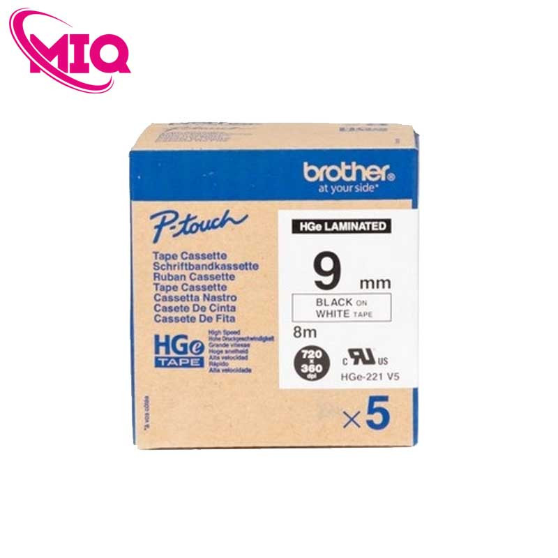 - Nhãn HGe-221V5 là nhãn tiêu chuẩn chất lượng cao của Brother, với kích thước 9mm tiện lợi cho nhiều ứng dụng văn phòng và công nghiệp.