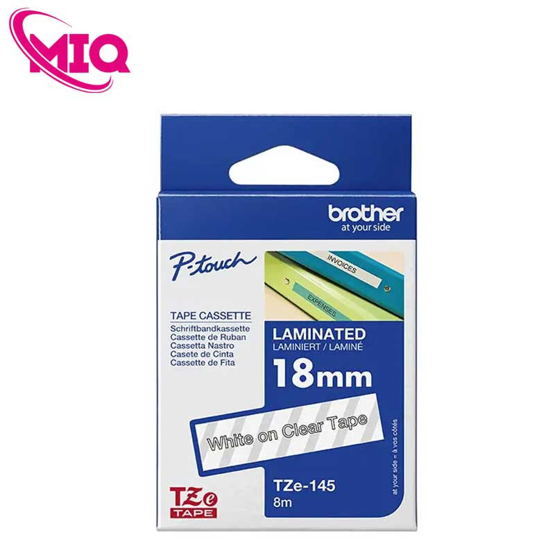 - Nhãn TZe-145 là dòng băng nhãn tiêu chuẩn của Brother với chữ trắng trên nền trong suốt giúp hiển thị tinh tế và hiện đại