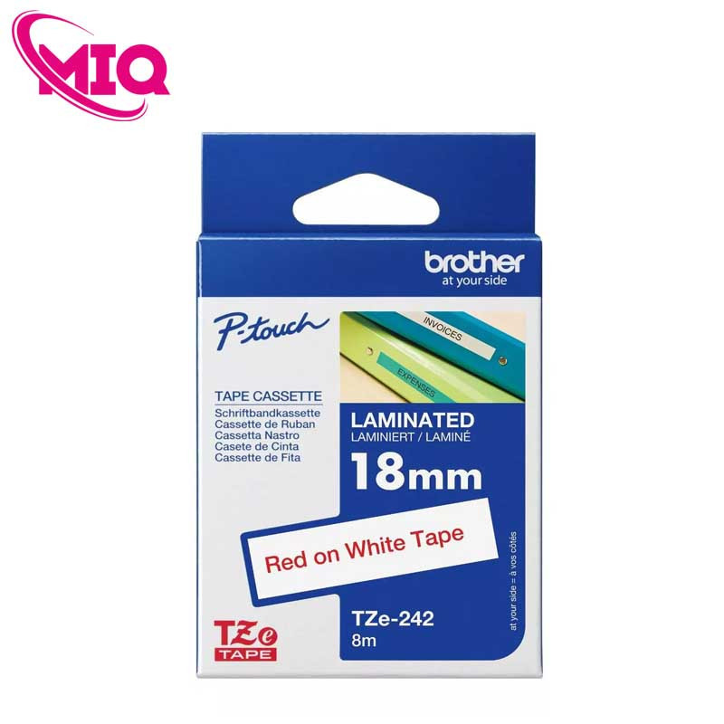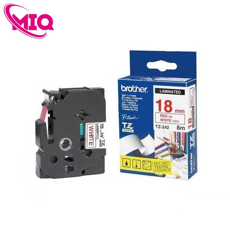 - Nhãn TZe-242 là dòng băng nhãn tiêu chuẩn của Brother với chữ đỏ nổi bật trên nền trắng giúp tăng khả năng cảnh báo và nhận diện thông tin quan trọng