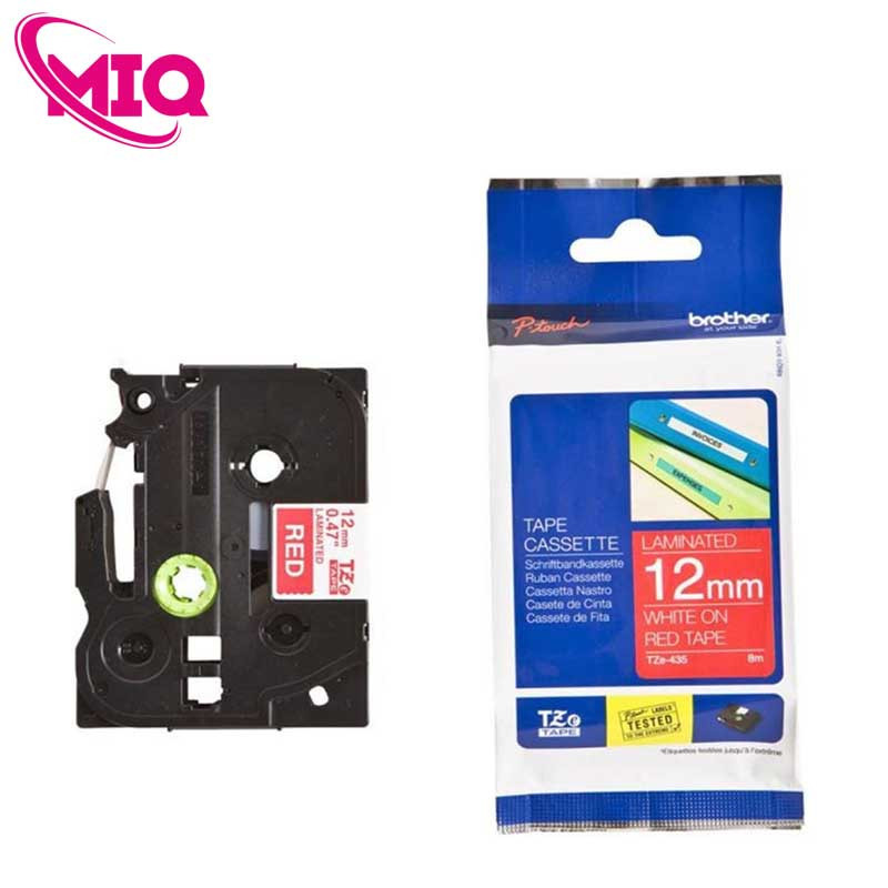 Nhãn TZe-435 tiêu chuẩn - Chữ trắng trên nền đỏ 12mm
